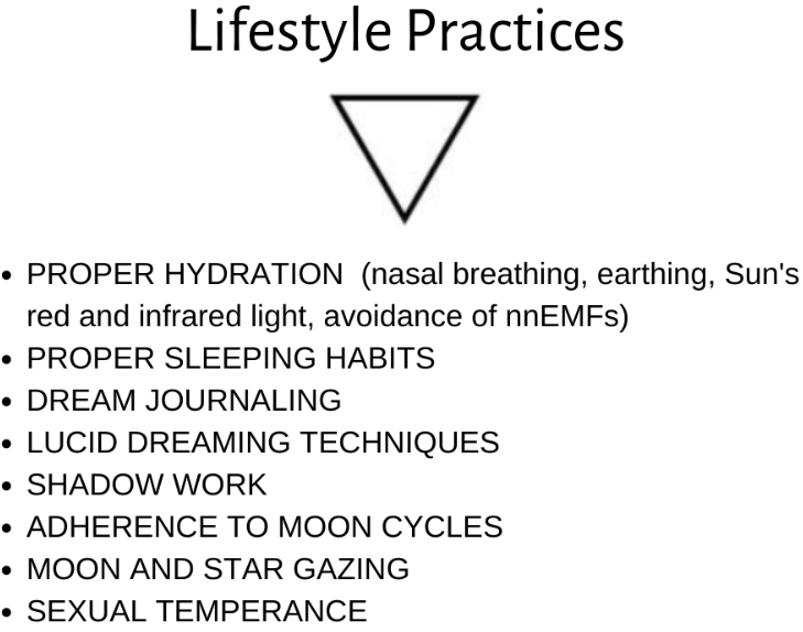 The water element is associated with our Sacral Chakra that is located just below our belly button. The Sacral chakra corresponds to the sex glands of our endocrine system and the spiritual ability of astral travel, due to the tight bond between serpent sexual energy and dreaming. By going to bed on an empty stomach we help to induce lucid dreaming which is often a precursor to astral travel. This is because hunger stimulates the production of DMT in our brain which allows us to achieve deeper states of meditation/sleep, stronger connections to nature and to tap into the quantum’s infinite intelligence.